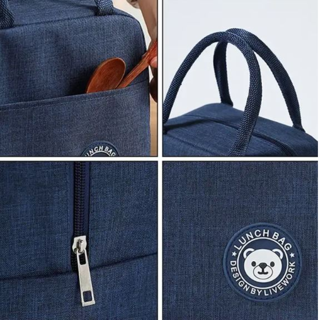 Lonchera térmica portátil con cremallera, ideal para niños y adultos.